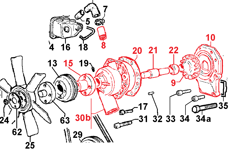 Pompe à eau livré avec support, axe, joint interne... (pièce non fourni au détail)