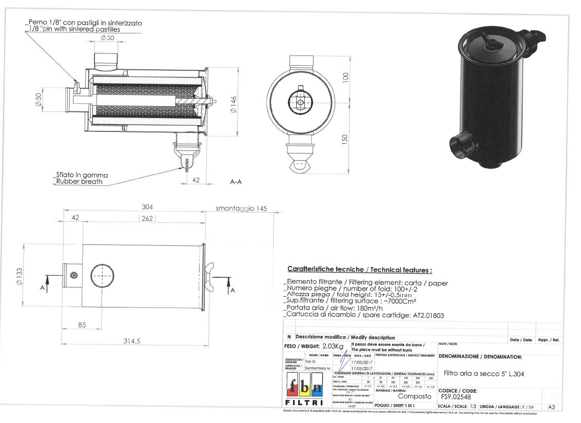 Filtre air sec complet F.B.N