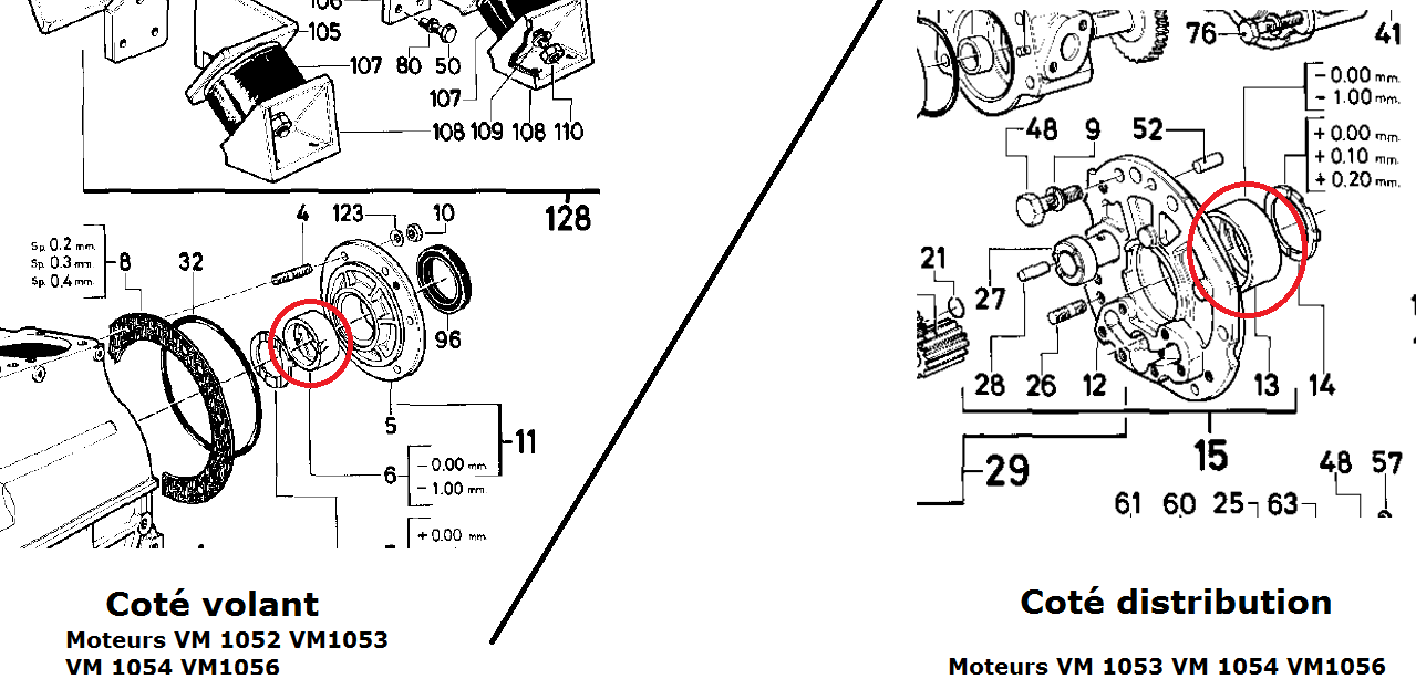 - VM 1053 - VM 1053SU (coté volant moteur et coté distribution)
