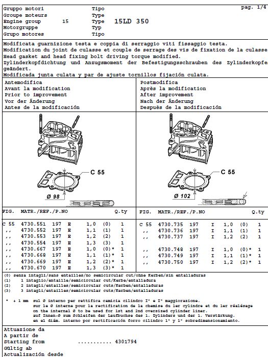 Les joints de culasse Ø102mm remplacent les anciens joints de culasse Ø98mm (modification des couple de serrages des vis).