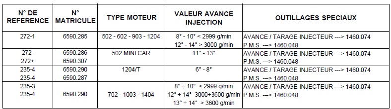 Outillage pour le contrôle de l'avance de l'injectionsur la basse pression de la pompe (nouveau modèle) réf.6590-285 (BOSCH 0.414.001.002) + 6590-290 (BOSCH 0.414.001.003) et tarage de l'injecteur