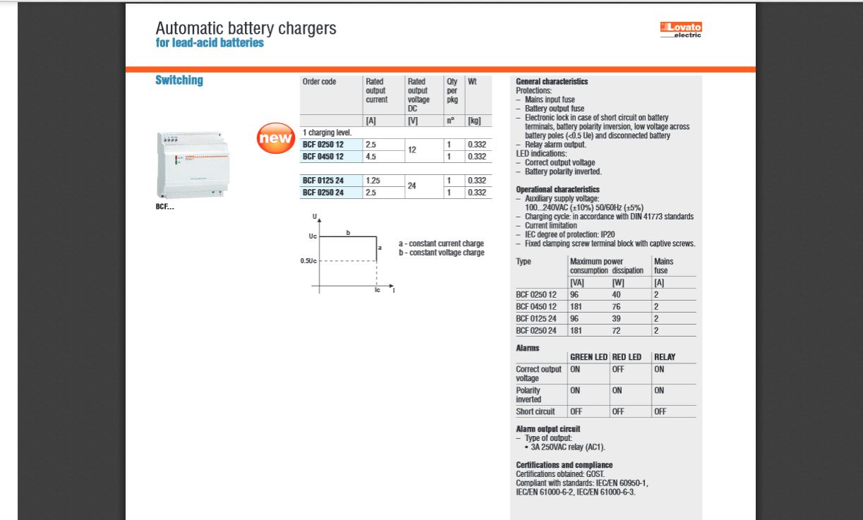 Automatic battery charger 24 Volts 2,5 Amp. Alim. 100-240 V (LOVATO BCF 0250 24)