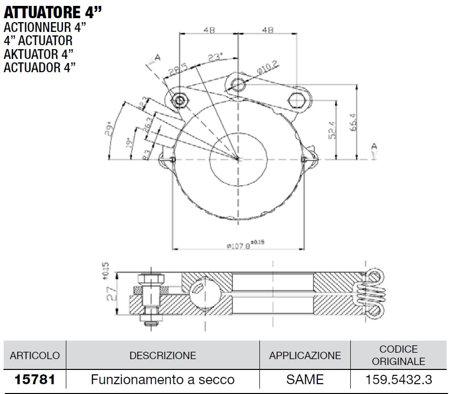 Mécanisme de freins SAME LAMBORGHINI 159.5432.3 (actionneur 4'')