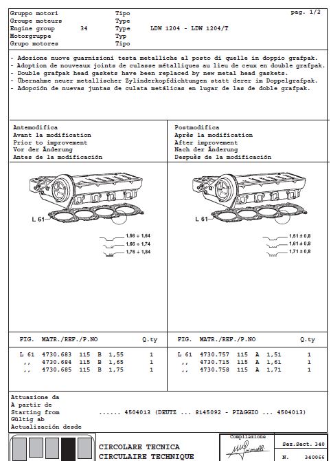 Veuillez trouver ci-dessous la circulaire technique LOMBARDINI concernant les ancien - nouveaux joints de culasse :