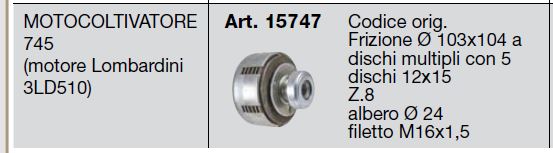 Embrayage multidisques pour BCS motocoltivatore 745 avec moteur LOMBARDINI 3LD510 / Ø103x104 avec 5 disques Ø93mm / CERMAG 15747