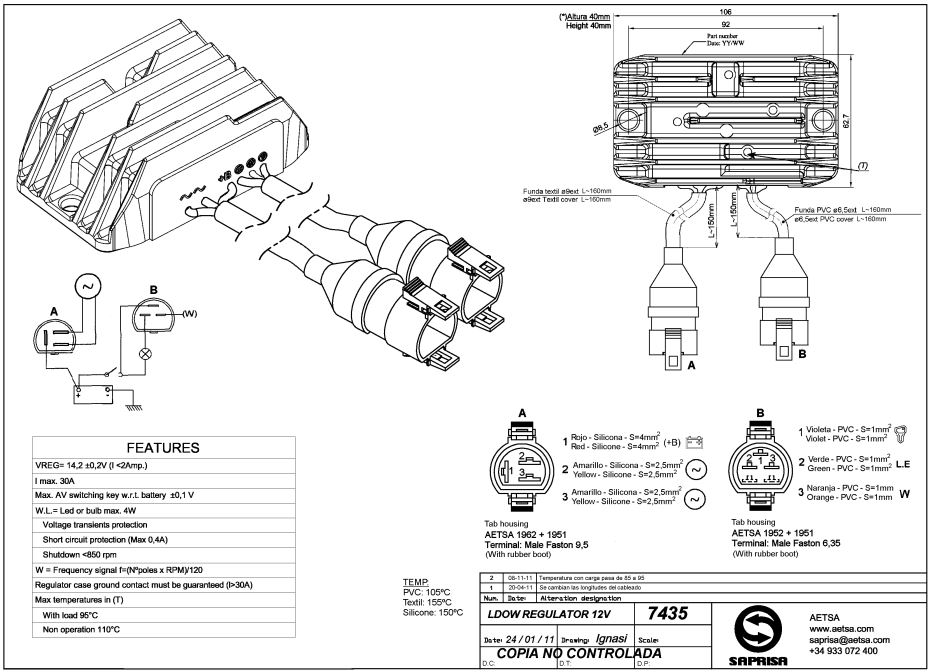 Remplace sans modification les régulateurs LOMBARDINI 7362.324 (SAPRISA 4445) à 5 contacts (il suffit de ne pas brancher la borne "W")